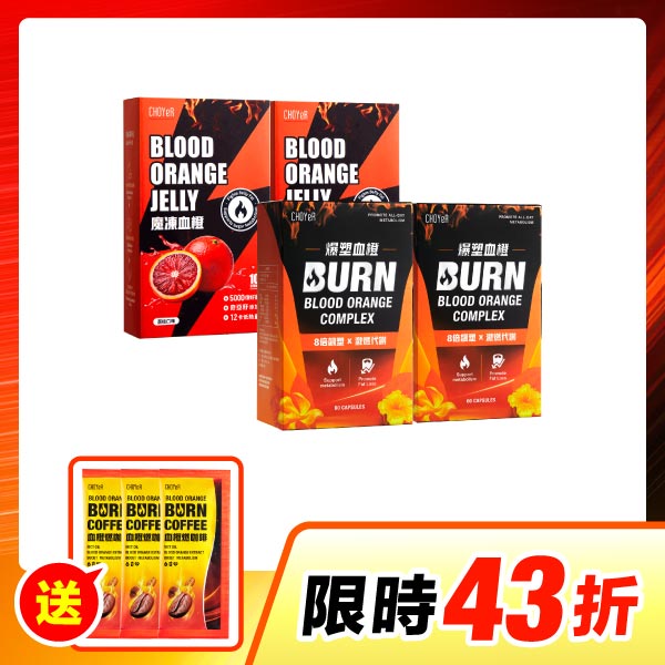 ☑ 此組包含「爆塑血橙(60顆)2入+魔凍血橙(10包)2入+血橙燃咖啡3包」